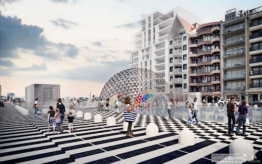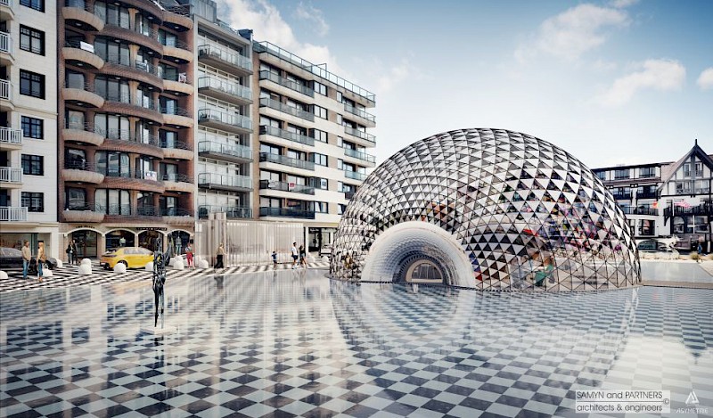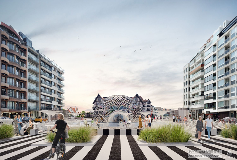 Il y a de la place pour des bancs autour de la place. Le dôme de verre abritera un établissement de restauration. Albertplein redevient la "place m'as-tu vu" d'antan : une place animée de Knokke-Heist où il fait bon s'attarder, où l'on se promène et où les terrasses sont à l'honneur.