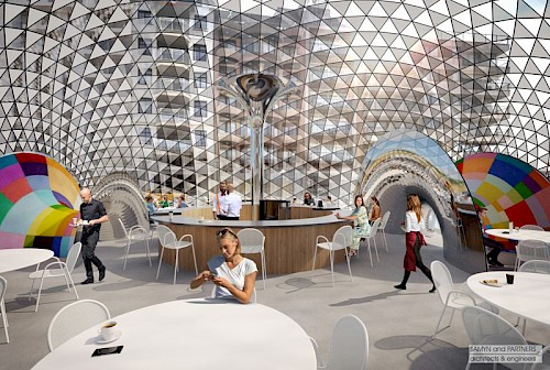La nouvelle attraction au centre de la place sera un pavillon de verre composé de 2211 fenêtres triangulaires en verre, avec un espace de restauration à l'intérieur.