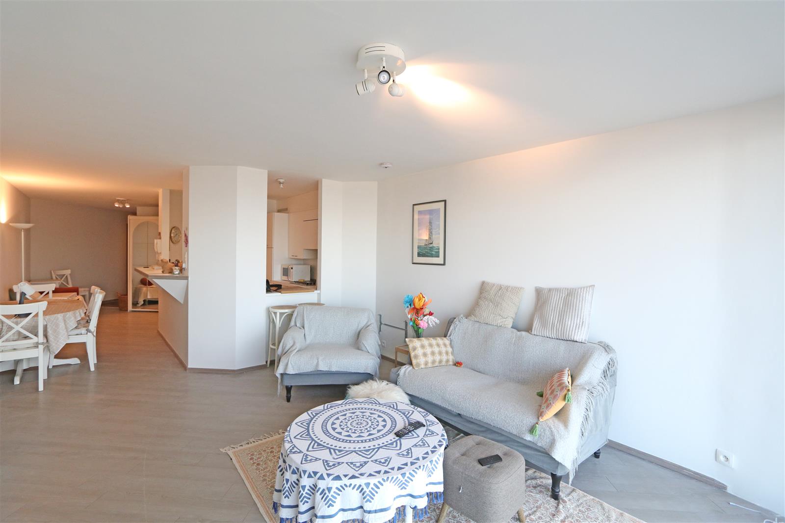 Appartement convivial avec vue mer magnifique. 2 chambres à coucher double, 2 salles de bains. Localisation centrale, emplacement inclus dans les environs.