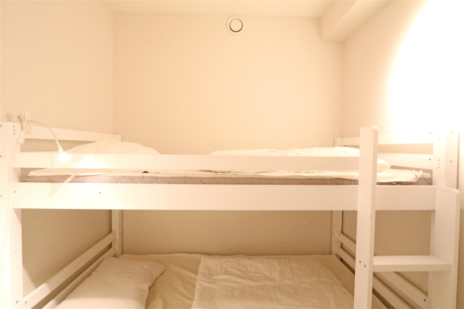 Prachtig appartement in nieuwbouwresidentie met ruim zeezicht Dit mooie appartement maakt deel uit van een moderne nieuwbouwresidentie en biedt een panoramisch zeezicht. Het beschikt over 3 slaapkamers: een master bedroom met eigen badkamer, een slaapkamer met twee bedjes kop-teen kop-teen en een derde kamer met stapelbed. Daarnaast is er een douchekamer aanwezig voor extra comfort. Een garage in de buurt is beschikbaar. (enkel op aanvraag.)