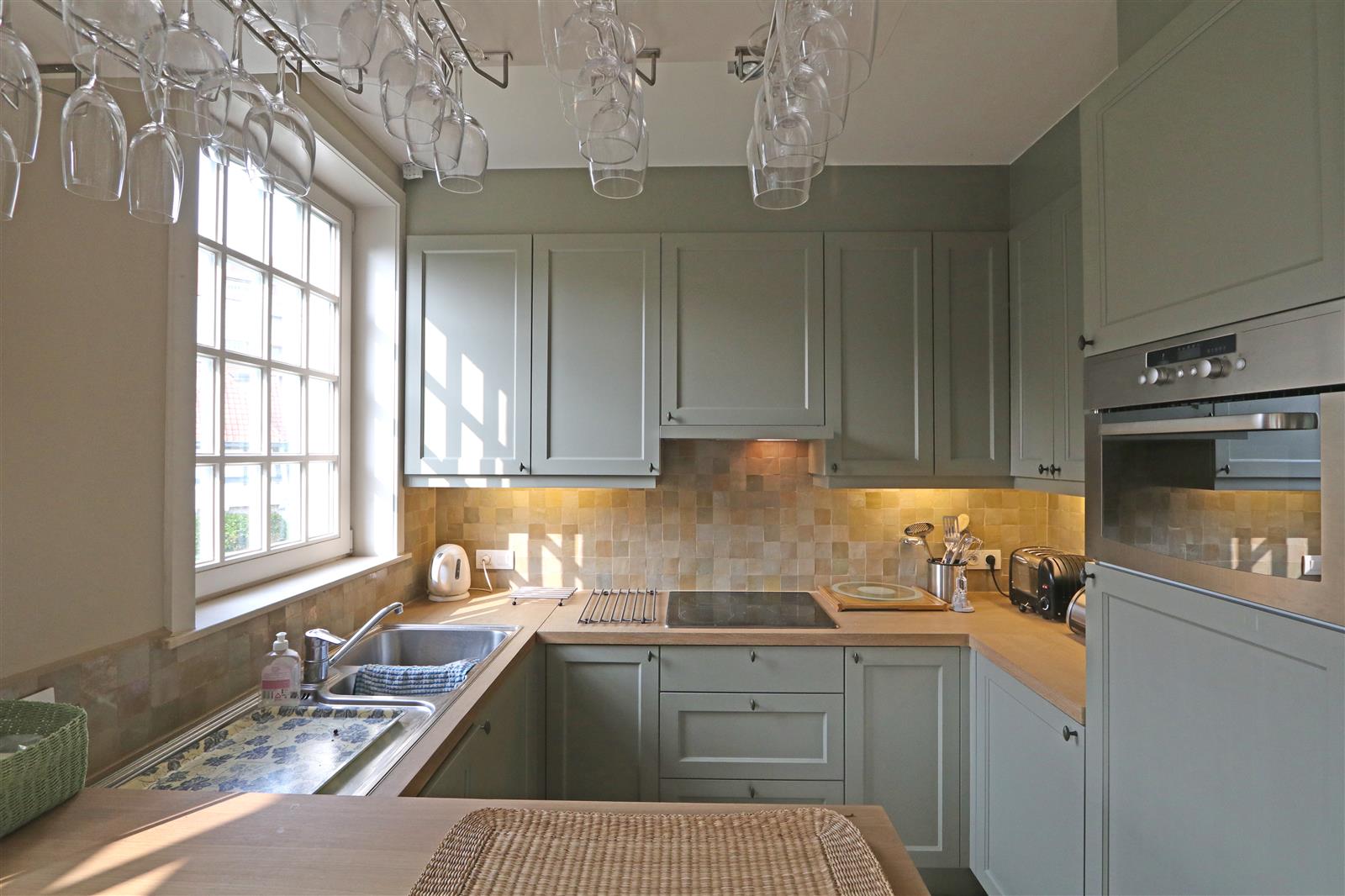 Prachtig appartement in een unieke residentie, rustig gelegen en vlakbij het centrum en de Zeedijk. 2 slaapkamers, ingerichte keuken, aangenaam ruim salon, staanplaats in het gebouw.